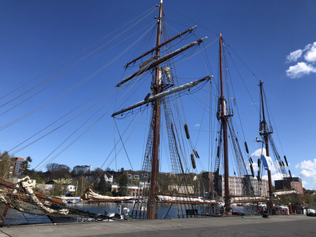 Meine Schwester steht hier mitten unter den Schüler:innen - Verzeihung! Seeleuten - und wer genau schaut, kann auch mich und meinen Freund finden...an Land ganz hinten links in schwarz und natürlich mit der obligatorischen Maske...